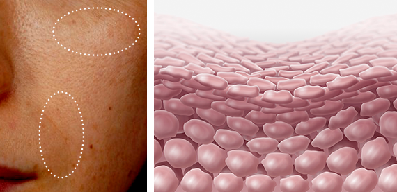角層細胞が収縮してしぼみ、ハリのない見た目に。