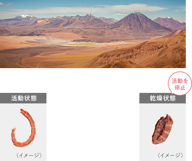 宇宙に2年半もの間おいても、地球に戻り水をかければ蘇生することが知られている。