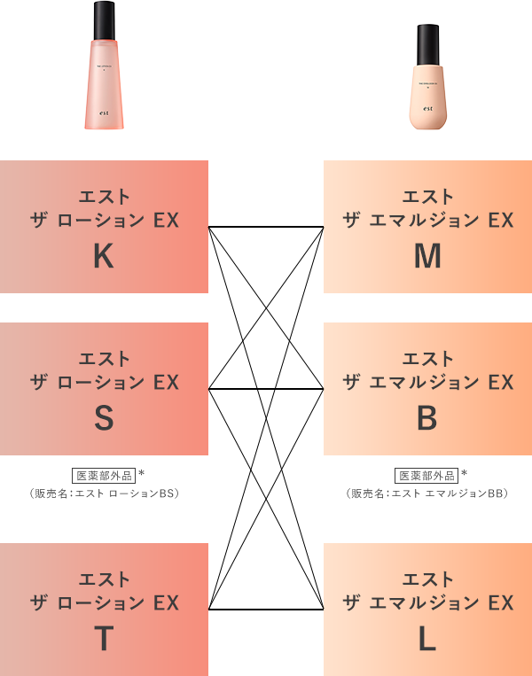 *1 Sタイプのみ医薬部外品メラニンの生成を抑え、シミ・ソバカスを防ぐ(販売名:エスト ローションBS)