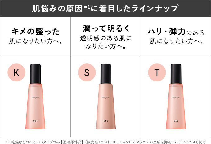 *1 Sタイプのみ【医薬部外品】メラニンの生成を抑え、シミ・ソバカスを防ぐ(販売名:エスト ローションBS)