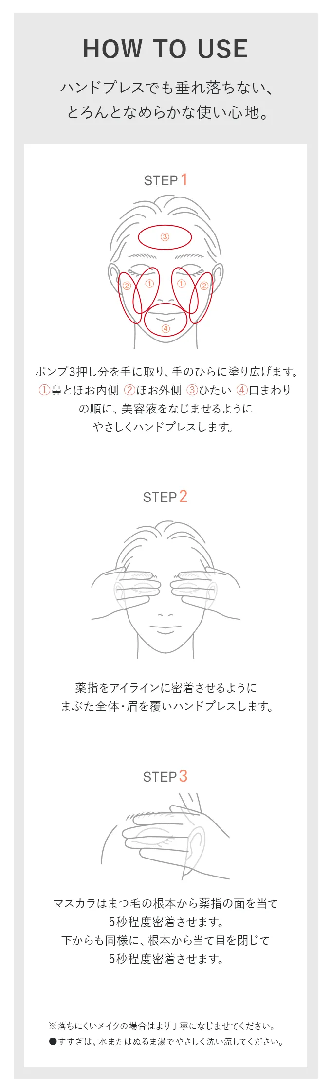 ハンドプレスでメイクを浮かし、素早くすすぎでオフ。