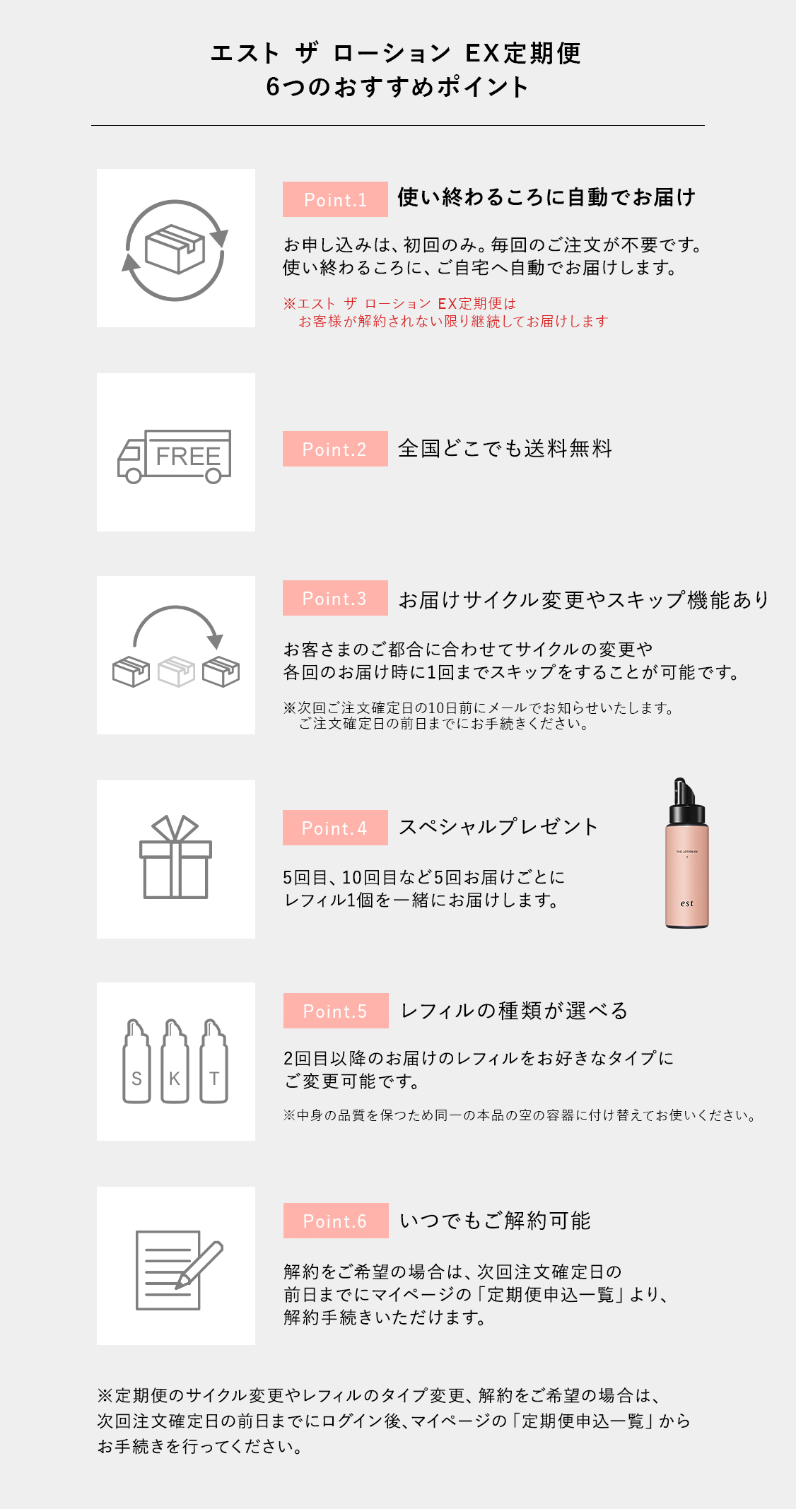 お届け5回ごとに、エスト ザ ローション EXレフィル 130mlをプレゼント!